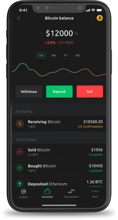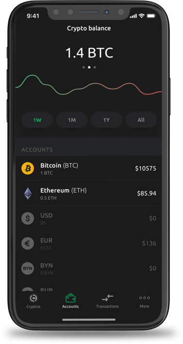 Our mobile application allows you to quickly buy crypto tokens using fiat money at competitive prices, securely store your assets and easily make crypto transfers.